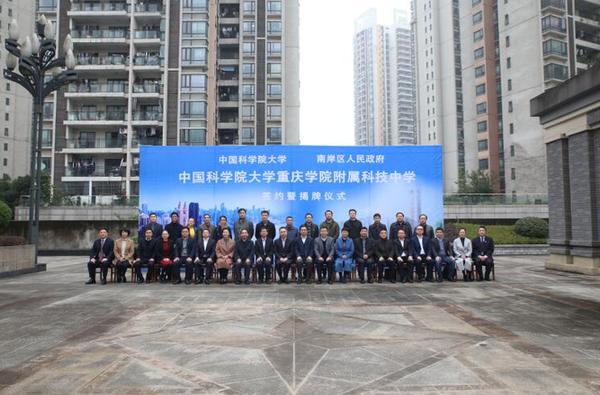 国科大副校长、中国科学院院士徐涛,中国科学院重庆绿色智能技术研究院院长袁家虎,国科大副校长杨国强,重庆市政府副秘书长唐慎,重庆市教委副主任邓睿,南岸区委常委、宣传部部长魏小红,区委常委、区政府常务副区长黄红,区人大常委会副主任陈廷明,区政府副区长刘永华主持出席签约仪式。